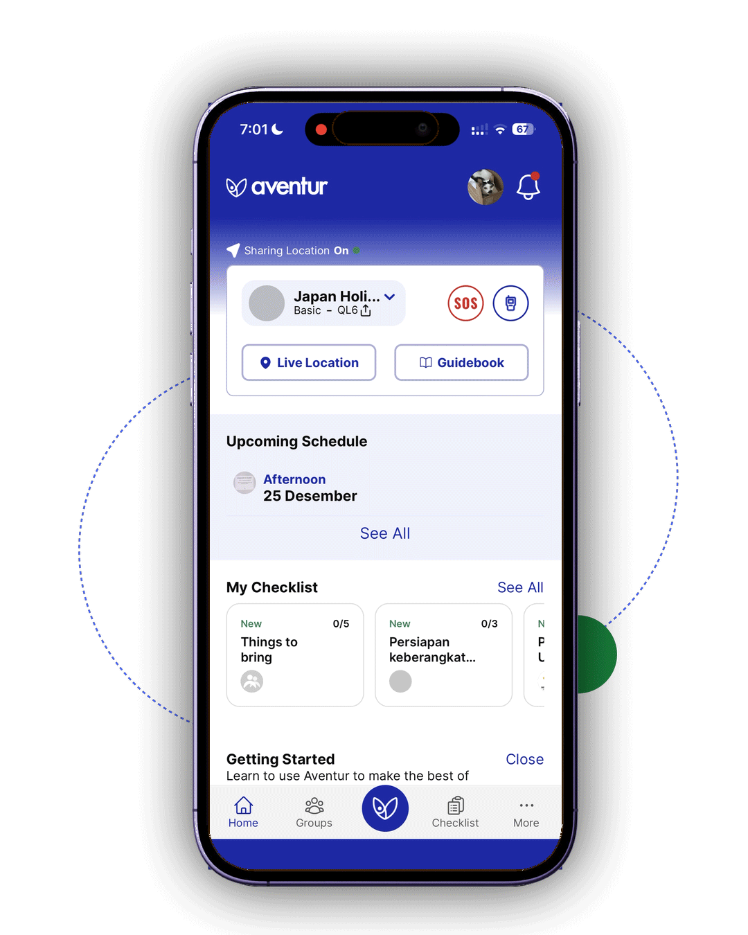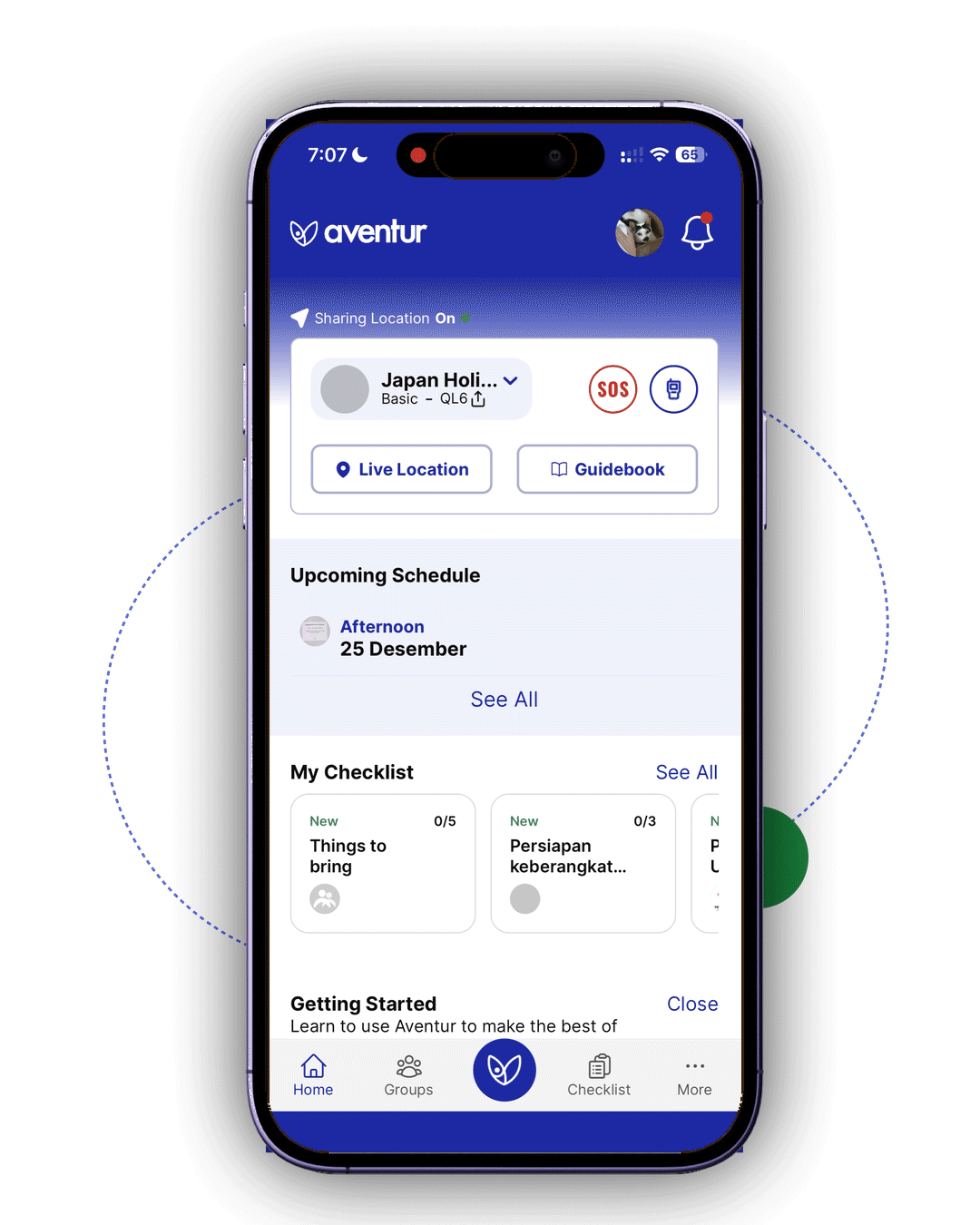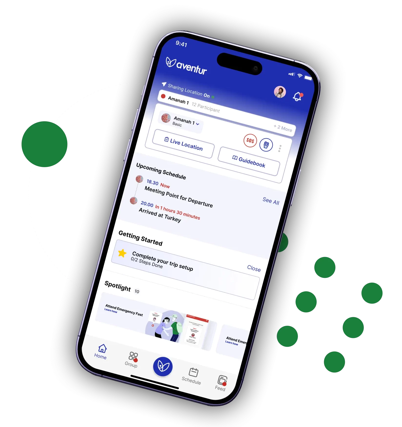 From shared schedules and checklists to walkie-talkie communication, live location, and emergency alerts—Aventur keeps everyone aligned, informed, and safe.